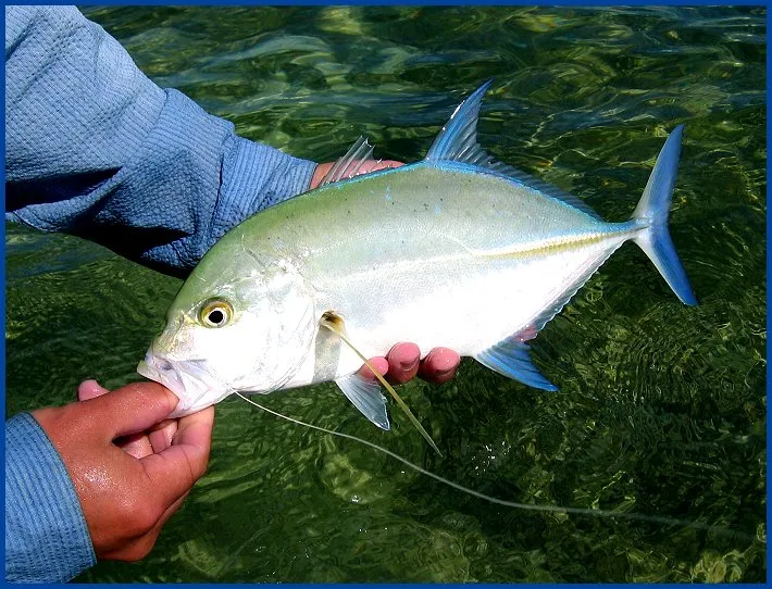 Bluefin trevally eagerly take a shrimpy looking fly and are a welcomed diversion to the absence of bonefish.