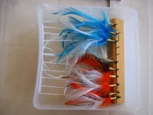 The tying instructions are uncomplicated and most people would easily be able to fill their boxes with this pattern. Lars used nothing else, so you can trust that it works. He had luck with the blue and white flies, but also had some red and white ones in his box.