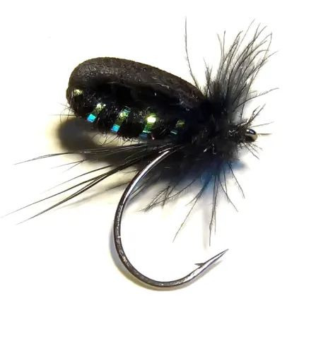 A simple foam fly well suited to imitate terrestrials such as beetles