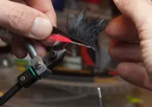 When you tie down the zonker strip on the front of the fly, you often get a fairly large bump under the thread - and under the head or the front hackle. You can avoid this by leaving a little space in front of the wing, and finishing it with a small bunch of hair similar to that on the strip.