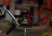 It would be nicer to follow if some sort of light background was behind the fly tying rather than a clutter of gear, find it difficult to follow, sorrry.