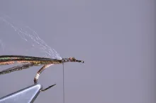 Twist the peacock and wrap a thorax with three of four wraps. Don't crowd the eye. Make a few thread wraps just behind the eye as a thread base on which to tie down the post.