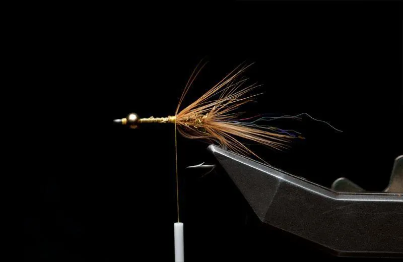 The second hackle sweeps back over the body and the tail