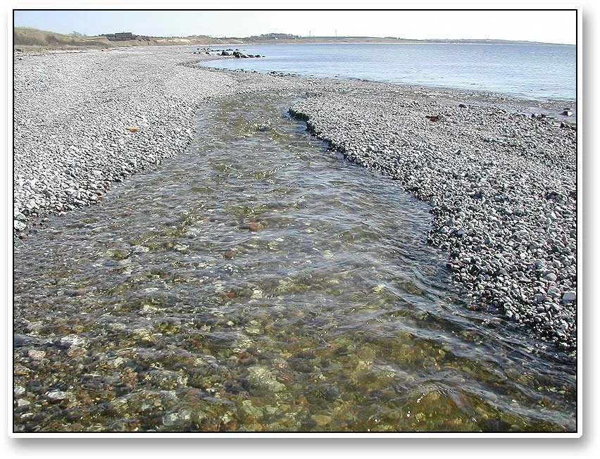 A small stream covers its last bit over the beach before reaching the ocean. Many of these streams run quite a stretch along the shoreline before breaking into the ocean.