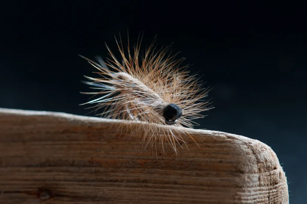 The long hairs on the larvae often give them a very bright aura, which is easy to imitate with a dry fly hackle