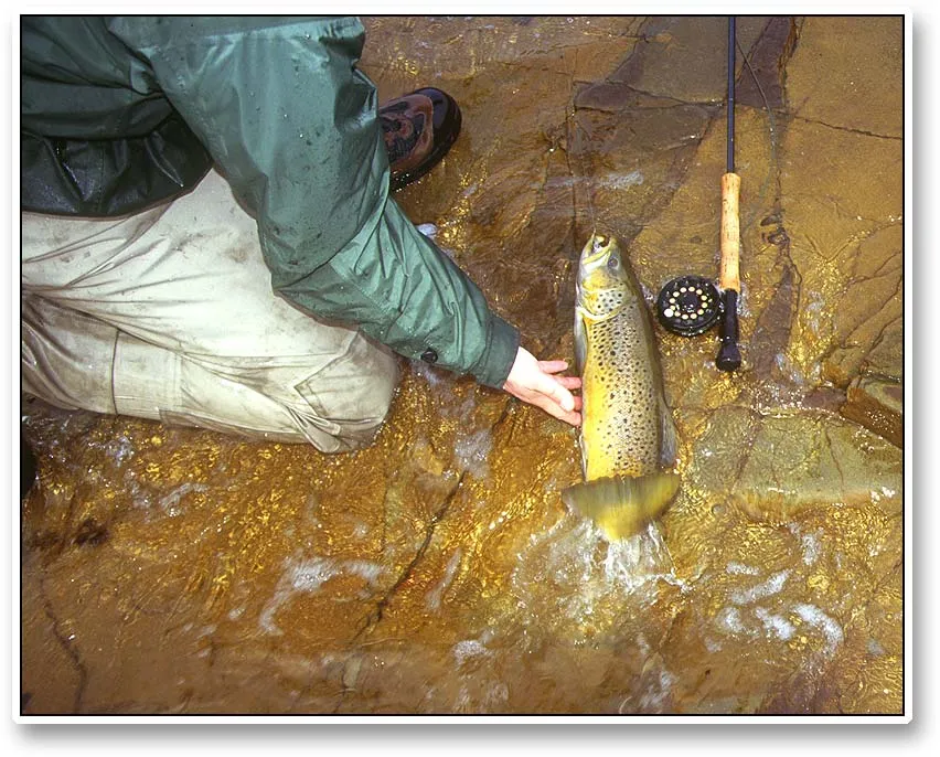 Steve is gettinh ready to unhook an exceptionally large and brown sea trout. The fish is obviously not happy with the situation.