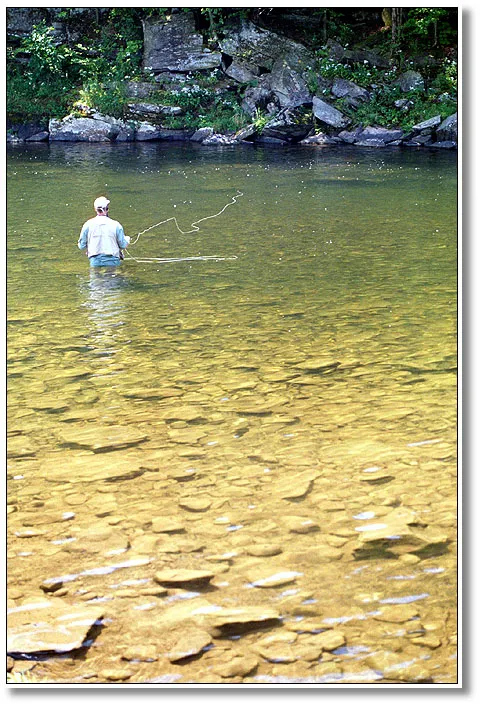 An angler working the deep slot on Cairns Pool. Did I mention the water is gin clear?