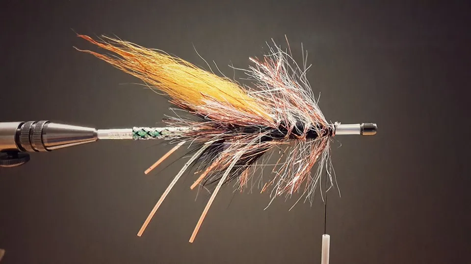 Wrap again. Yarn first, chenille follows. Tie down and trim.