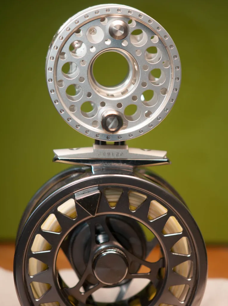 The Hardy reel on the top is small and the Scierra reel below is medium-large. The share the same reel foot standard, but the Hardy is 4% too small while the Scierra follows the standard.