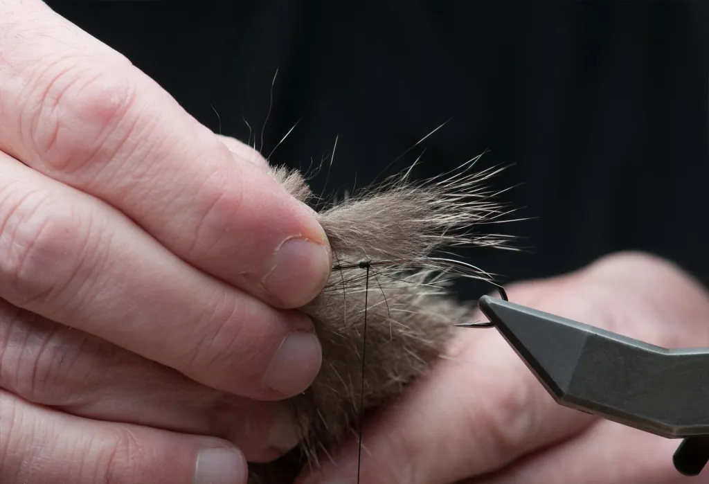 Select a small bunch of silver fox for the tail. It needs to be at least 1½ times the shank length