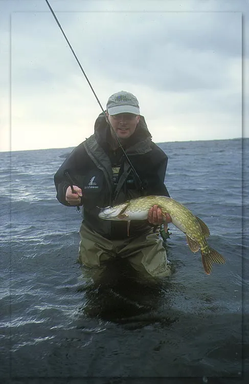 GFF partner Martin Joergensen presenting a decent pike. Not elegant, but then again... these critters have a lot of teeth. This is by the way the last picture ever of that Ketchum Release... a moment later the pike wiggled and the releaser took a lovers' leap into the dark waters of the Baltic never to be found again.