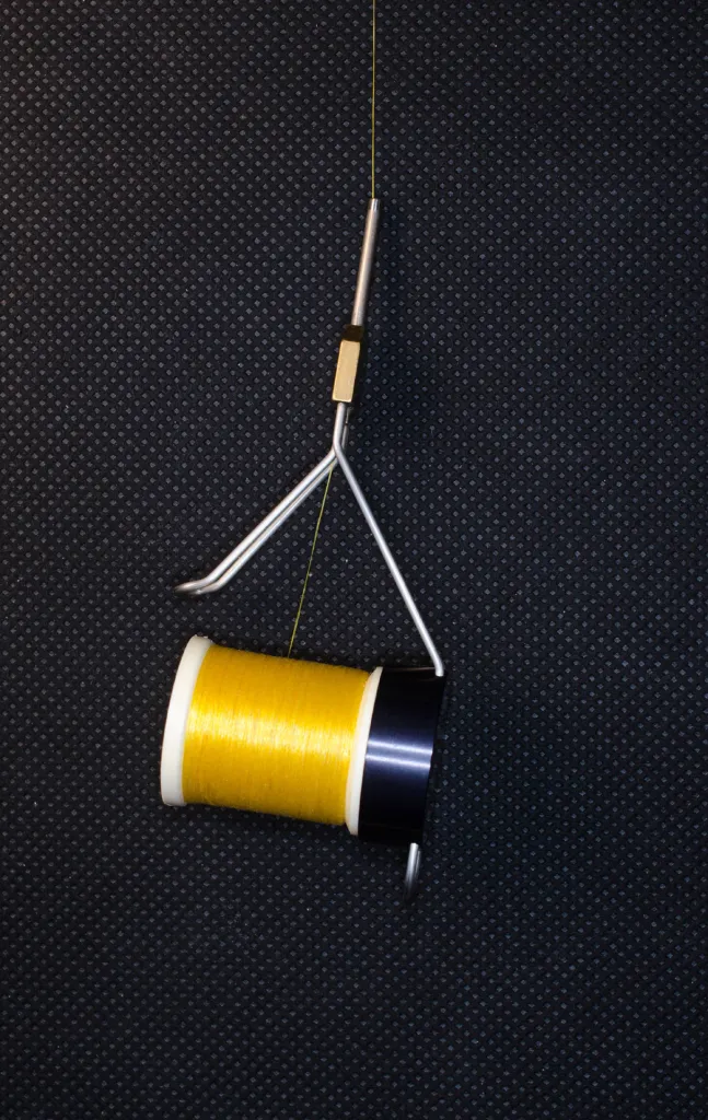 Faruk Ekich's thread retracting bobbin holder is asymmetrical and does not spin well.
