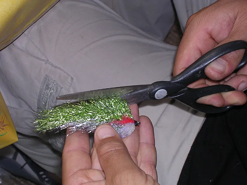 Trimming the stray fibers to give the fly a distinct tapered shape