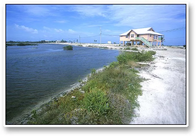 Some of the houses are quite beautiful with happy colors and nice locations. This one on the north part of the island marks the end of a dump and the beginning of a faily rich and well maintained neighborhood. The muddy lagune to the right held bonefish by the way...