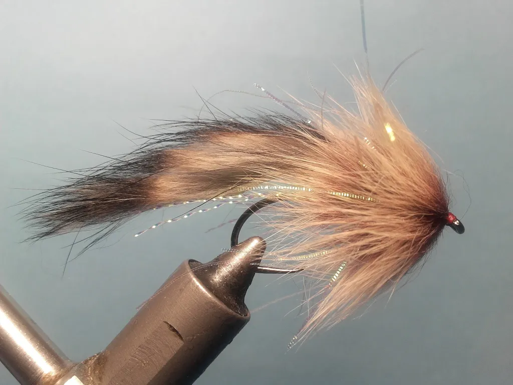 This fly uses black tipped hair for the tail/wing and light tipped hair for the hackle