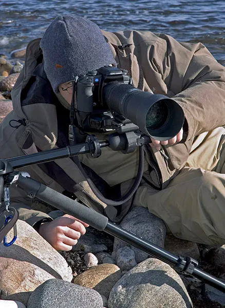 This is an example of a tripod, which can go very low. Not only can the central stem be removed, but it can be turned horisontally to get even lower, and the legs can also be folded out to be almost flat against the ground.