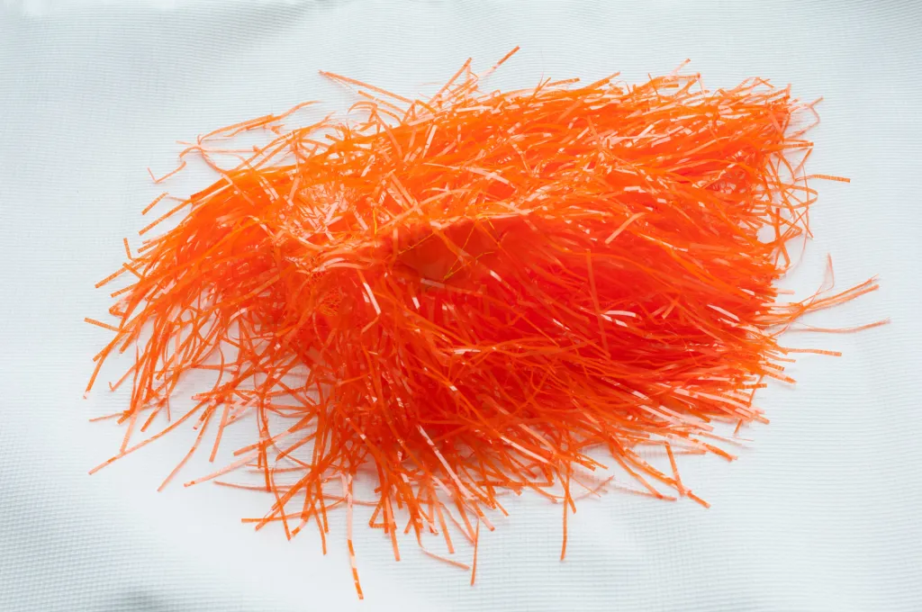 This is a wig costing a couple of dollars. The material is plain semi-translucent plastic. Nice for pike flies or as a body wrap for streamers.