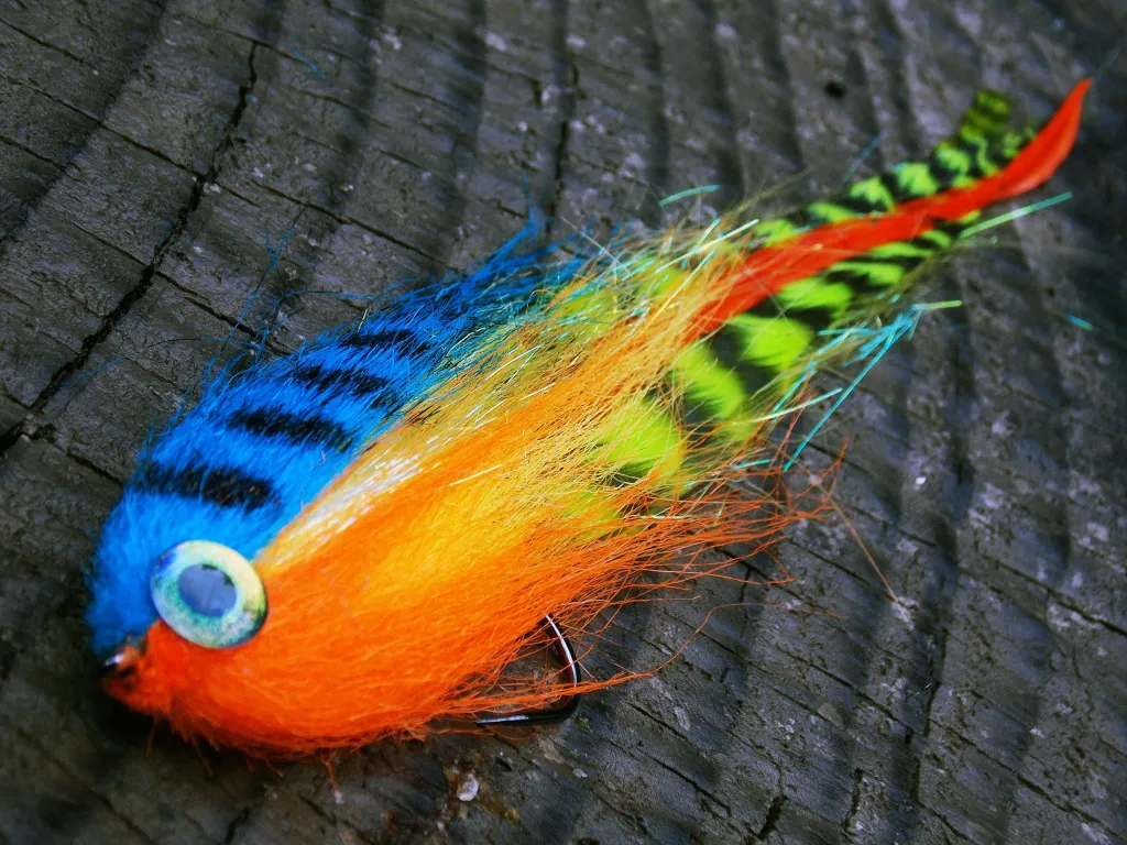 Using bright colors and markers Ruben martin has made a very colorful perch or peacock bass like fly