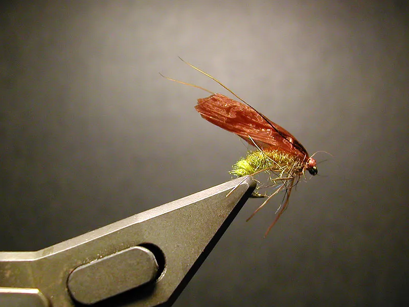 Oliver Edward's POPA caddis imitates a dead or almost dead insect. This is often easier than trying to capture the subtle traits of a live animal.