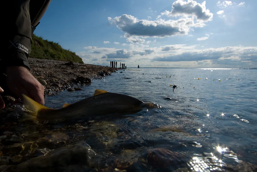 Using the vista is not limited to landscapes only. This image of a fish being released nicely shows the waterscape behind the angler.