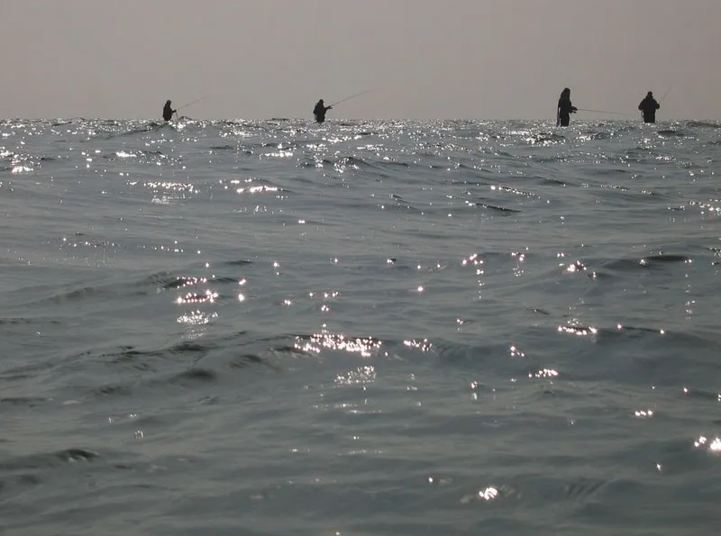 Four people in a row in the middle of the ocean. See that spot in the middle? That's where you need to be.