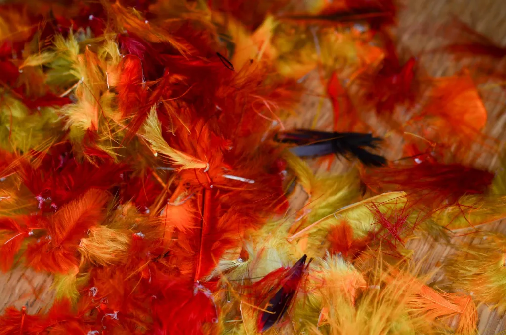 The pile of scraps reveals the large number of feathers that can go into the Pike Dusters.
