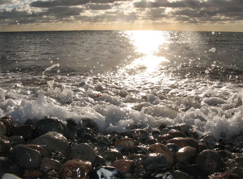 You don't need large waves pounding on a pier to get the feeling of the wind and waves. By using a flash, this small splash was frozen in mid-air.