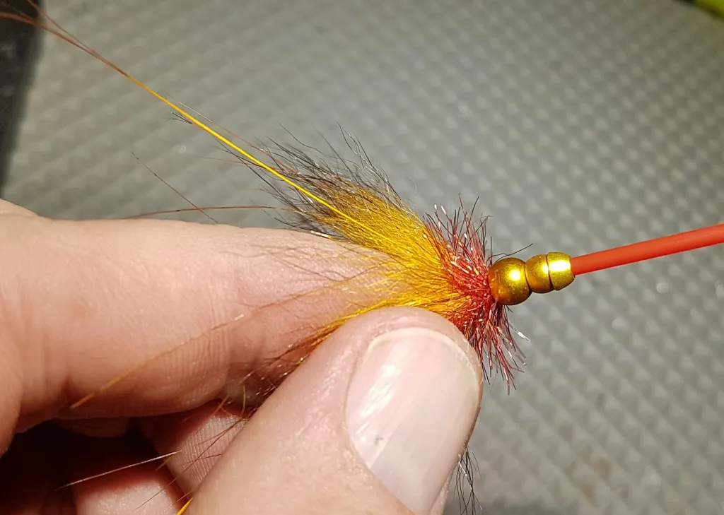 You can add a hackle before slipping the conehead over the tube, which will render the fly more like Marc Skovby's original. Consider securing the cone with superglue. Trim the tube and melt a collar to finish the fly.