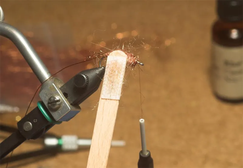 Tease out the copper dubbing. Be rough!