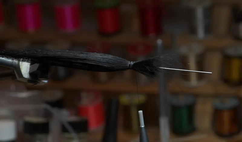 Notice how the wing creates an elongated drop shape. This is obtained by pressing the base of the wing with the thumb, and spreading out the hair to almost cover the top half of the tube.
