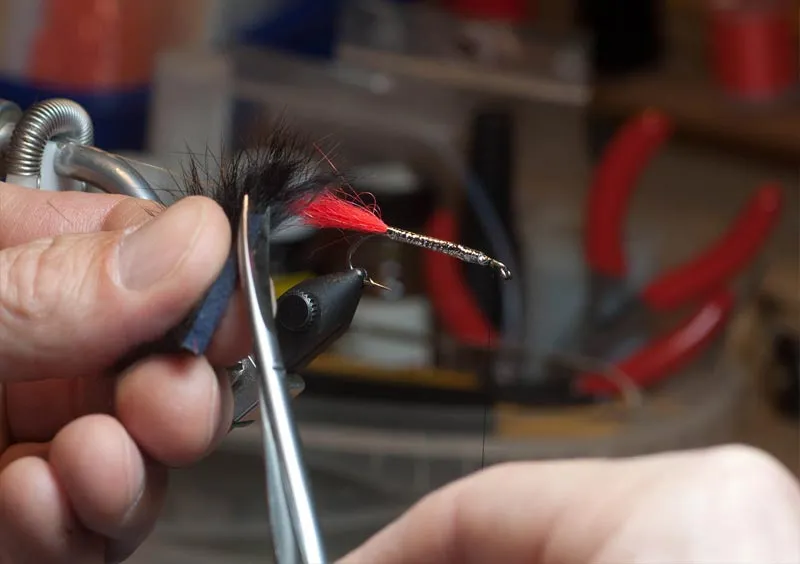 Cut a zonker strip, just a bit longer than the hook shank. Taper it in the front