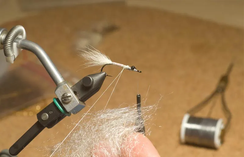 Prepare the dubbing for the loop. Make a flat and thin sheet that's about 10 centimeters or 4 inches long