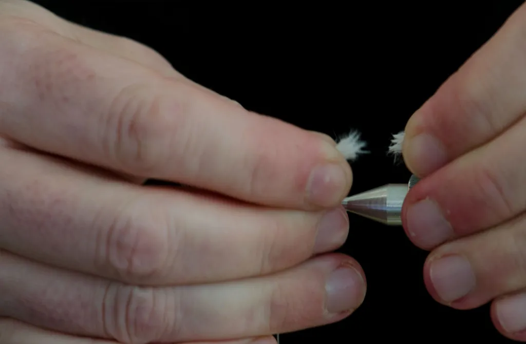 The herl breaks unevenly and looks more natural than if cut