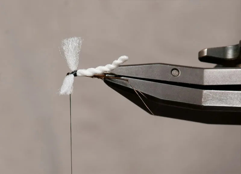 The wings are fine here - about half the body length each - but you can make them longer to match the natural more precisely if you want, but it influences the "castability" of the fly, which might tend to spin in the cast