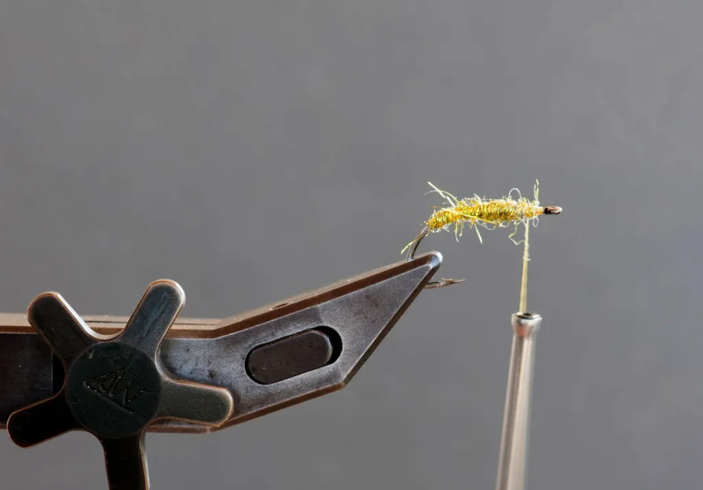 Form a slender, tapered body over the wire, leaving a bit of space in front for the hackle