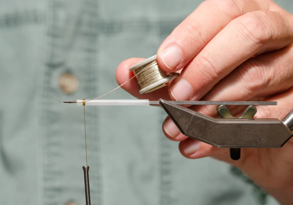 Tie in the tinsel in the front of the fly