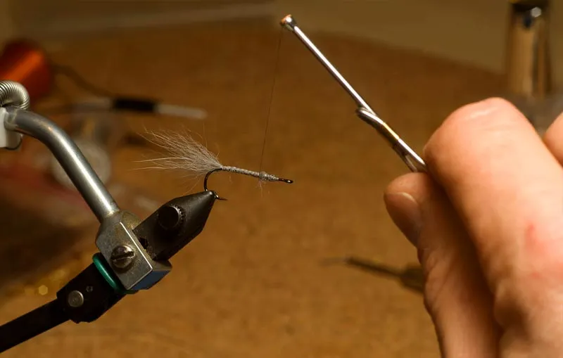 Even out the body by covering the tail material with a smooth layer of thread all up to the weight