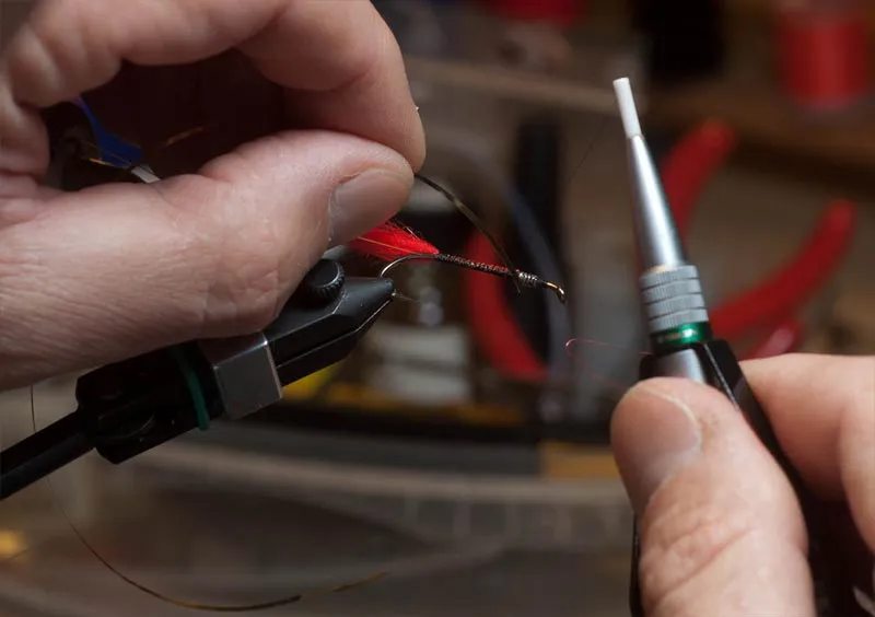Take the tread to the front of the body again, and tie in the tinsel. Tie the silver side inwards for a sliver body
