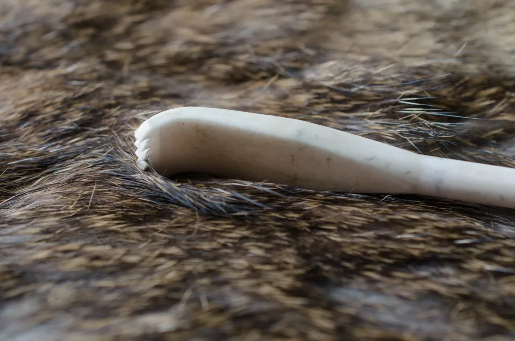 Using a toothed scraper is one of the best ways to get underfur from a skin.