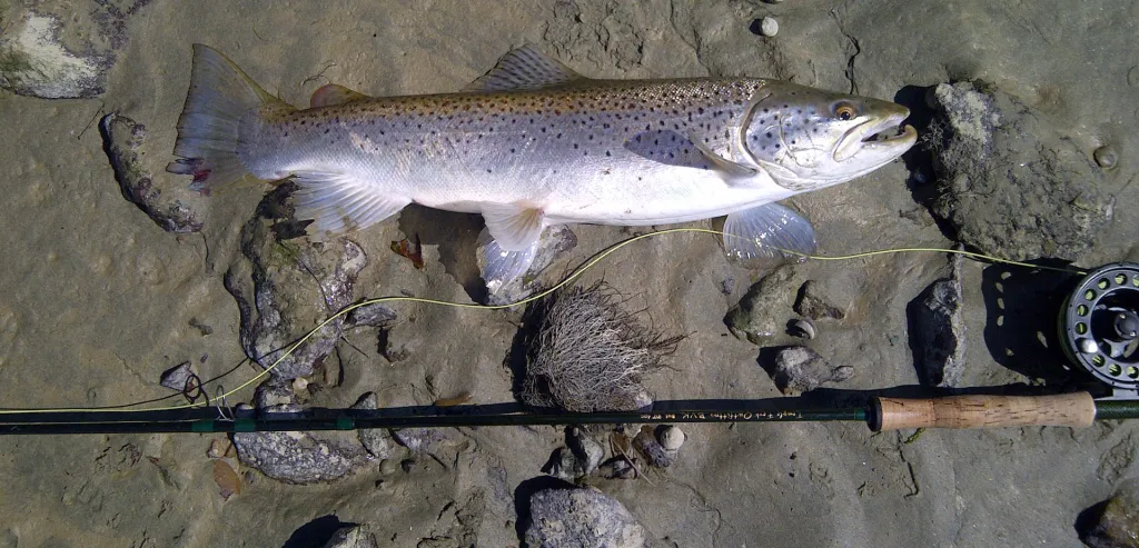 Many male sea run trout develop a distinct kype when they return to the river to spawn