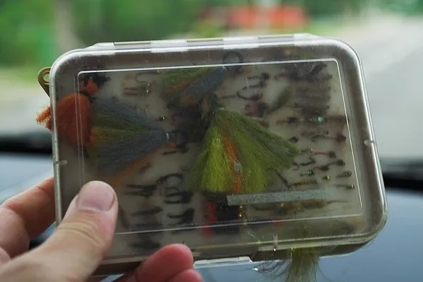 Kasper's fly box with an ample supply of grayling and trout flies and a few Schweitzer strike indicators