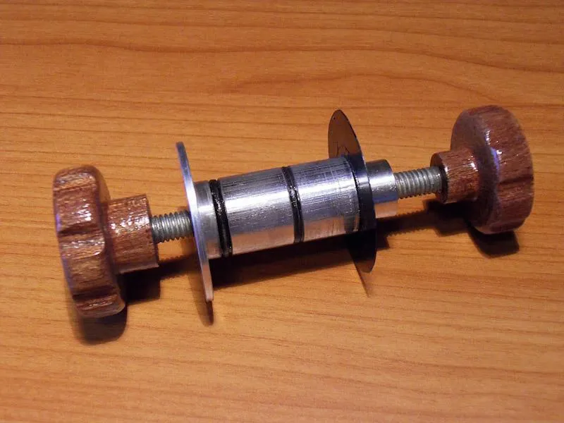The shaft with the clamping screws and the distance rings
