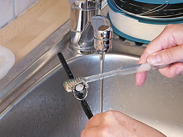 The toothbrush has a go at a shooting eye to remove salt residues, which will eventually cause rust and stain if not removed.