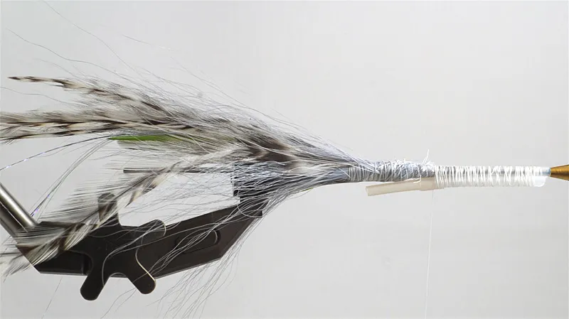 Tie on a long upper tube and add a shorter lower tube before finishing the fly over both