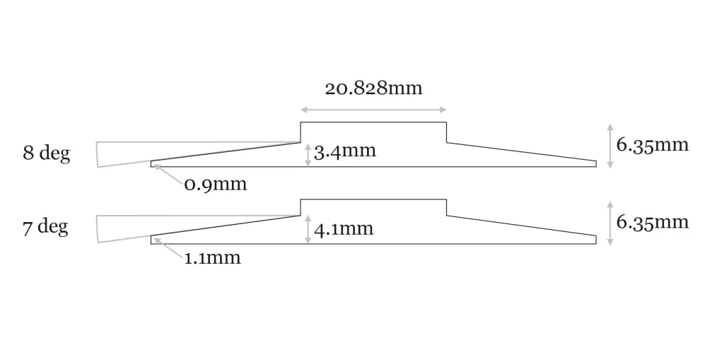 The angles on the flanges of the reel foot can vary and will allow for some variance in other dimensions depending on the selected angle