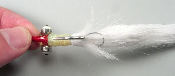The wire loop keeps the long rabbit strip on the Poxy Bunny from swinging down and around the hook bend.