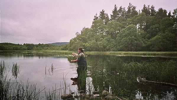 A perfect day for pike fly fishing on a remote Scottish highland loch