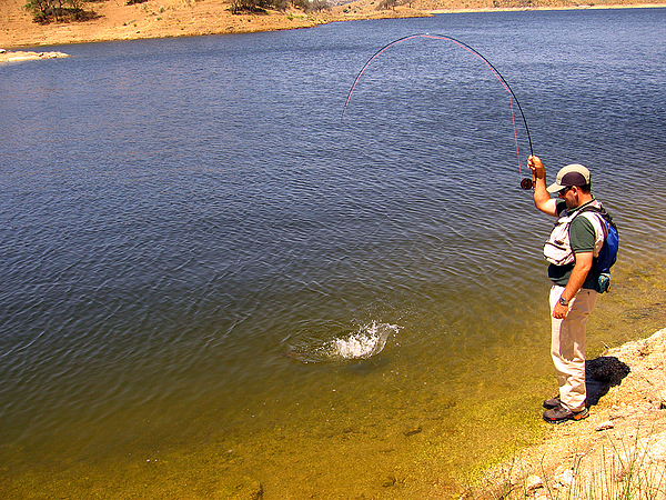 Proving the strength of a 3-weight rod on a powerful common barbel in the surface - Probando la potencia de una caña lÃnea #3 con un potente y vigoroso barbo común engañado en superficie.