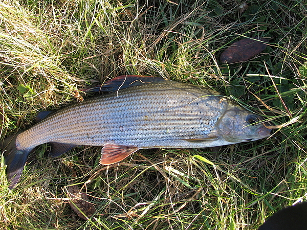 This was a glorious day, the sun was out, we had our lunch outside, and in the afternoon I got into some Grayling - I measured them against my rod handle and they were al longer than that. My rod handle is 12.5" so the Grayling were 13" - 13.5". Caught on pink Czech nymph, clipped coachman and Iron blue dry.