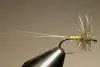 A small mayfly, which may be (mis)taken for a dun during the sometimes the concentreted hatches on late August and Septemper evenings. It uses a hollow extended body, parachute hackle and wings of cdc stems to float high. |
